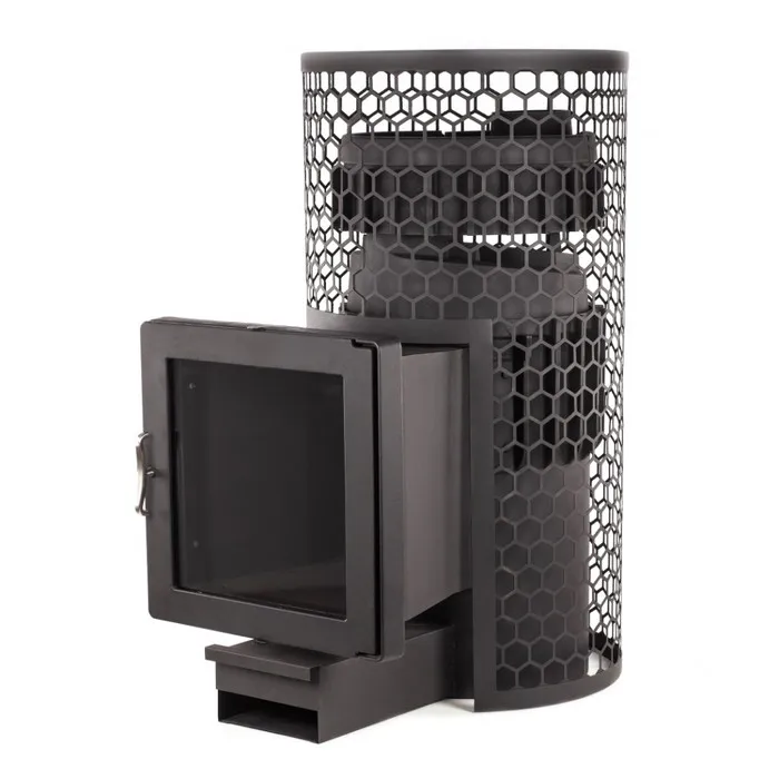 Банная печь ALMA c (сеткой-кольчугой) представляет собой твердотопливную модель с верхним подключением к дымоходу, топка из чугуна литьевого производства. Данный материал способен выдержать высокие и продолжительные термические нагрузки, устойчив к коррозии, а также отличается высокой теплопроводностью и теплоотдачей. Толщина стенок составляет 10 мм, что исключает линейное расширение, деформации и прогорание в процессе эксплуатации. Предназначена для отопления помещения парилки объемом от 20 до 30 куб.м.