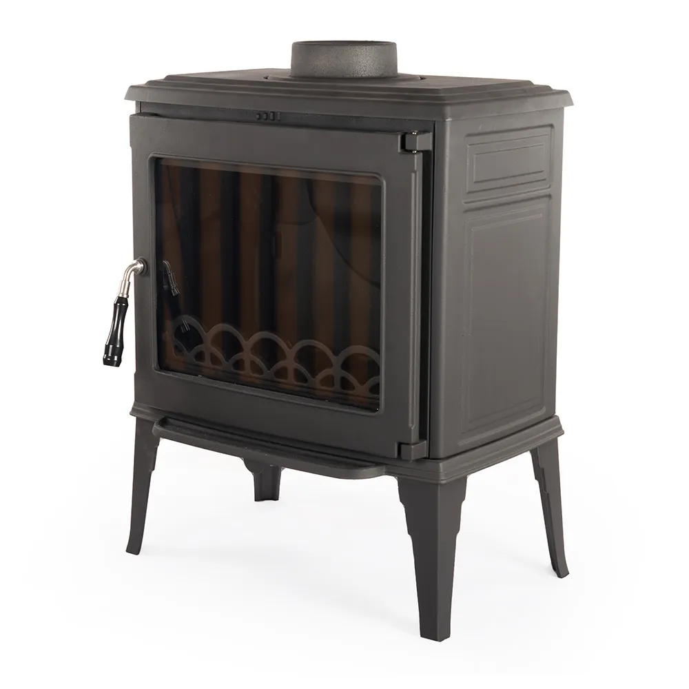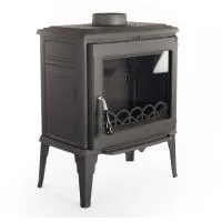 Печь-камин Fireway Matis обладает прочным корпусом из чугуна, покрытым стильным антрацитовым напылением. Эта конструкция способствует эффективному накоплению тепла и его постепенному выделению в помещение даже после того, как огонь погаснет. Мощность печи составляет 10 кВт, что позволяет обогревать пространства объемом до 250 кубических метров.