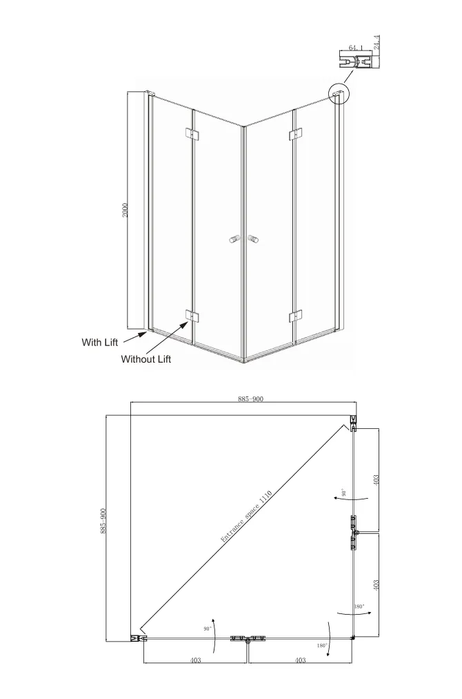 Все внутренние и наружные части комплектующих изготовлены в отделке SlimChrome+, придающей максимальную утонченность и блеск для сочетания со смесителем и душем. Уплотнители обеспечивают 100% герметичность изделия, благодаря плотному соединению стекольного полотна со всеми элементами душевого ограждения