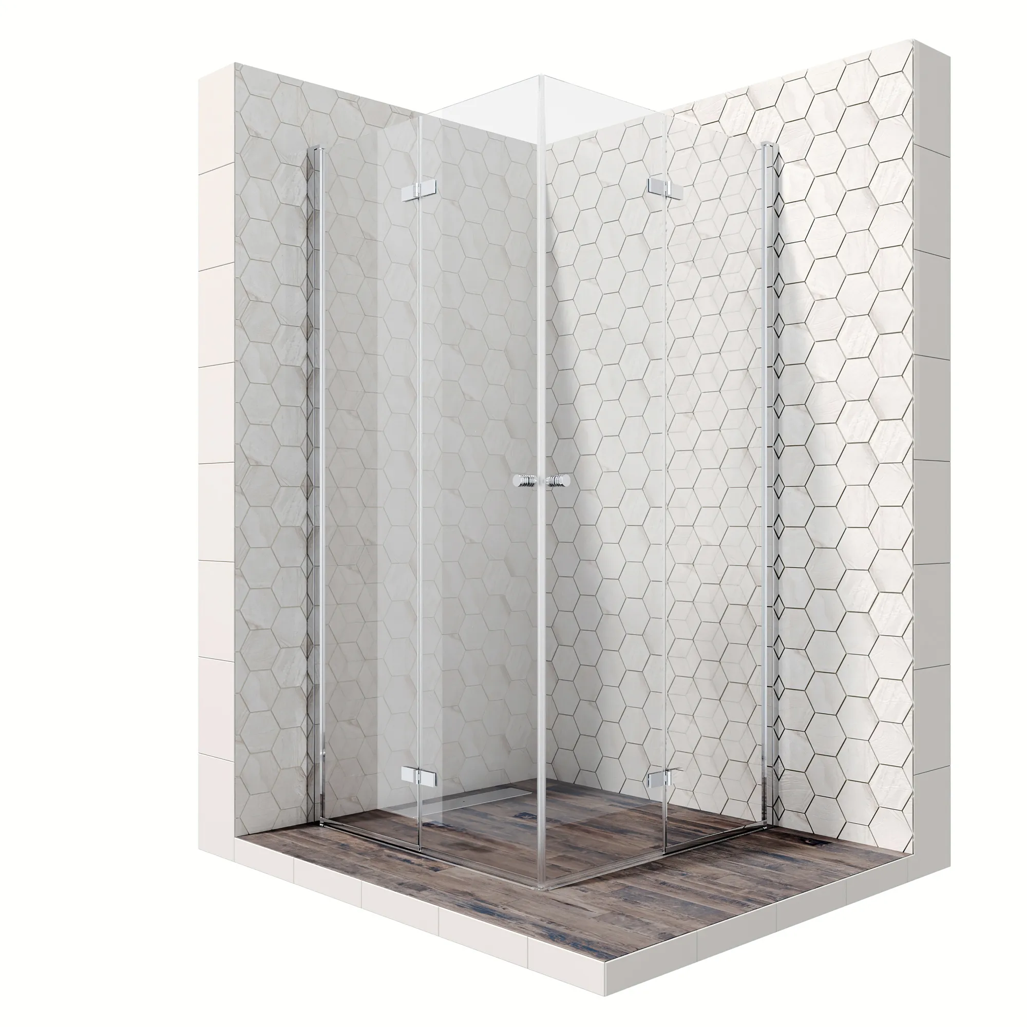 Квадратное душевое ограждение с распашными и складывающимися наружу и во внутрь дверями
